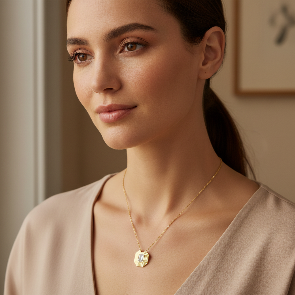 La zirconia ilumina tu piel, la cadena dorada combina con todo, y su diseño minimalista te permite usarlo sola o en capas cuando quieres sentirte más poderosa. Un detalle simple que cambia cómo te ves… y cómo te sientes.