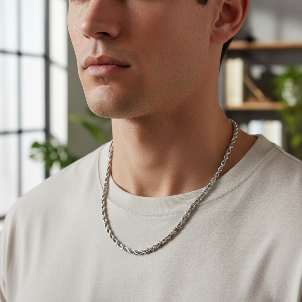 Cadena de Rope Plata de Hombre en Acero Inoxidable | Vanytel